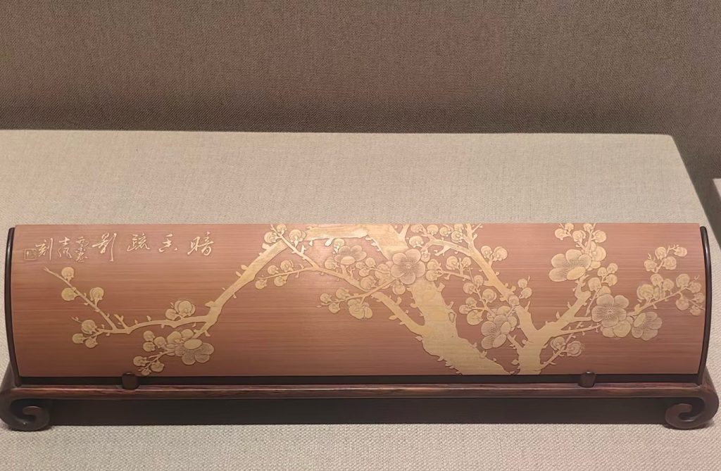 A technique using the outer green layer of bamboo to create intricate patterns (poems, landscapes, figures);